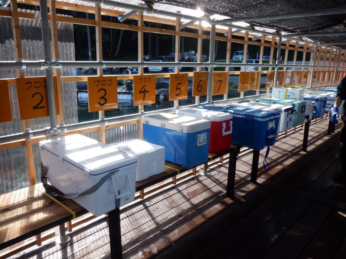 お客様はクーラーボックスをご確認の上、ウロコ番号をスタッフにお伝え下さい。クーラーボックスは移動させないようお願いします。 -